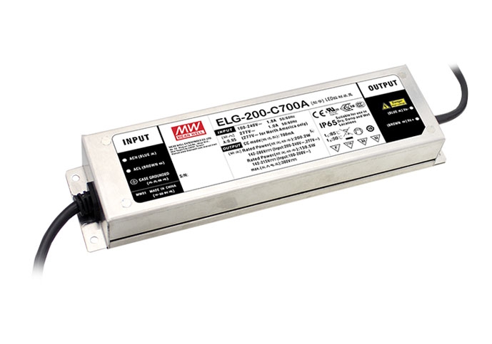 ELG-200-24A-3Y is a 201.6 Watt, 24 Volt, 8.4 Amp, constant voltage + constant current mode output LED driver with 100 ~ 305VAC input voltage.