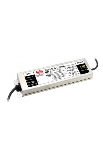 ELG-200-24A is a 201.6W 24V 8.4A Constant Voltage + Constant Current mode Output LED Lighting Power Supply with 100 ~ 305VAC input voltage.