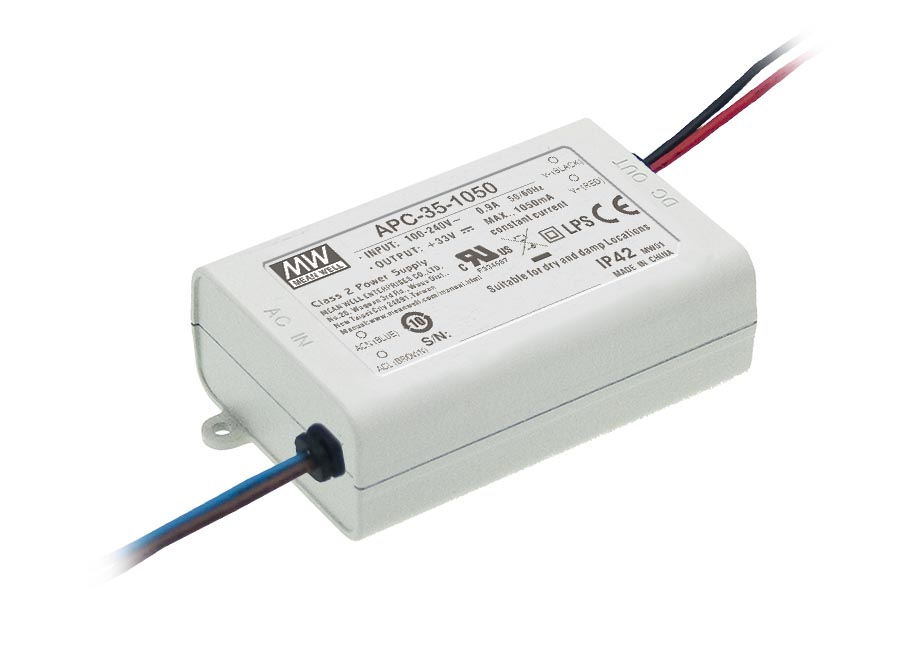APC-35-1050 is a 34.7W 11 ~ 33V 1050mA Single Output LED Lighting Power Supply with 90 ~ 264VAC input voltage.