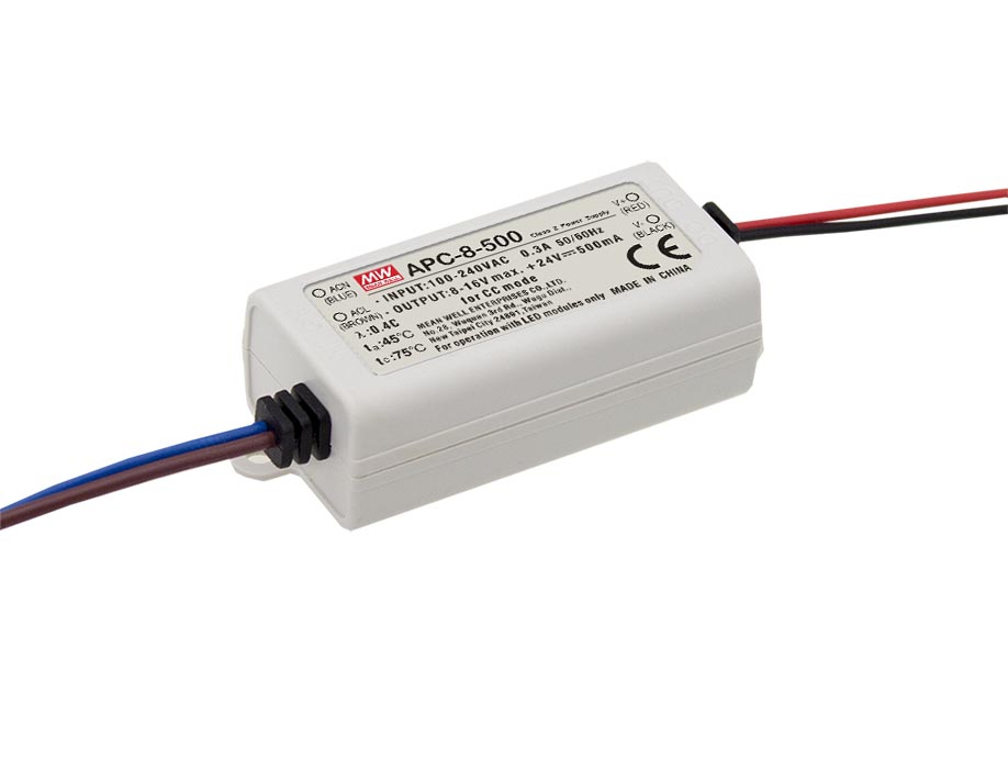 APC-8-500 is a 8W 8 ~ 16V 500mA Single Output LED Lighting Power Supply with 90 ~ 264VAC input voltage.