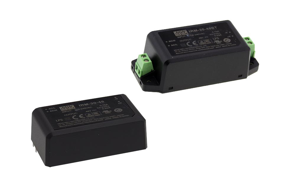 IRM-30-12ST from Mean Well is a 30 Watt, 12 Volt, 2.5 Amp Single Output Encapsulated Power Supply with 85 ~ 264VAC input voltage