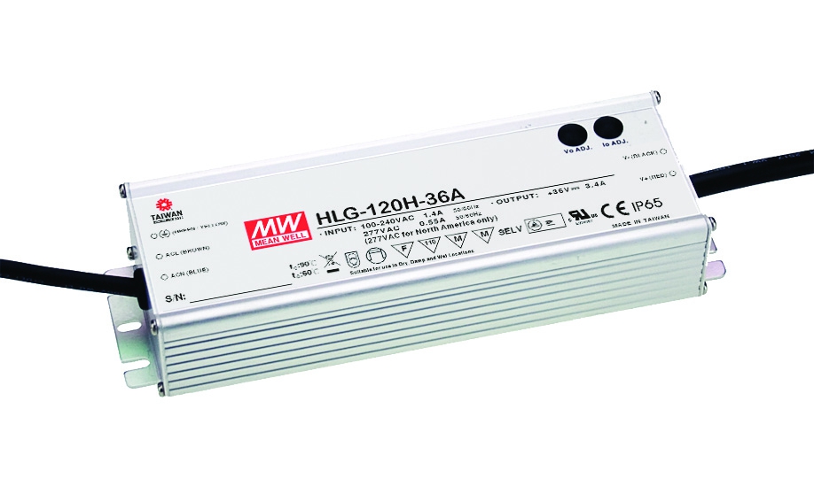 HLG-120H-12A from Mean Well is a 120 Watt, 12 Volt, 10 Amp, power supply for LED systems 90 ~ 305 VAC input voltage.