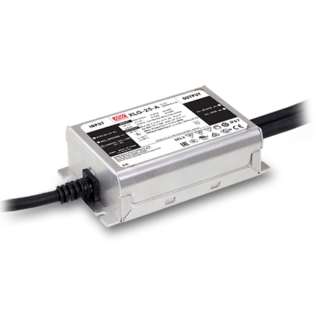 XLG-25-A is a 25W constant power LED driver that operates from 100 ~ 305VAC input and outputs from 22V to 54V DC and can provide an adjustable current between 0.25A to 1.05A of current via the built-in potentiometer.