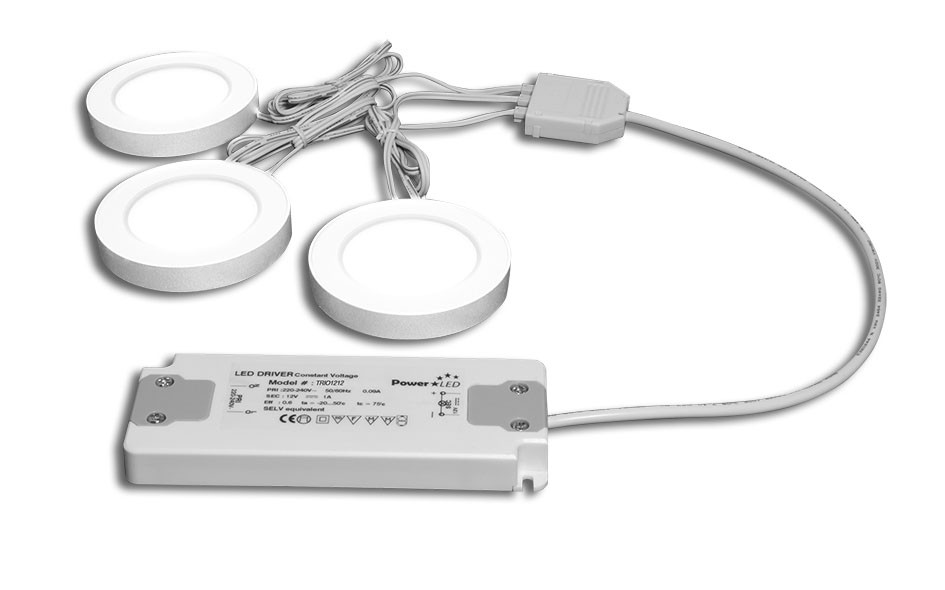 TRIO-3RW30K is a set of 3 pieces 3W Round White 3000K Magnetic LED Lights with Driver. The kit is supplied with quick connect connections and with prewired LED driver for ease of install.