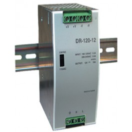 DR-120-24 is a 120W 24V 5A industrial din rail power supply offering full range AC input, selectable by switch. Featuring limiting AC surge current, short circuit, over load, over temperature & over voltage protections, fixed switching frequency at 55KHz and approval to UL508 the DR-120-24 Series can be implemented into a wide range of industrial control applications.